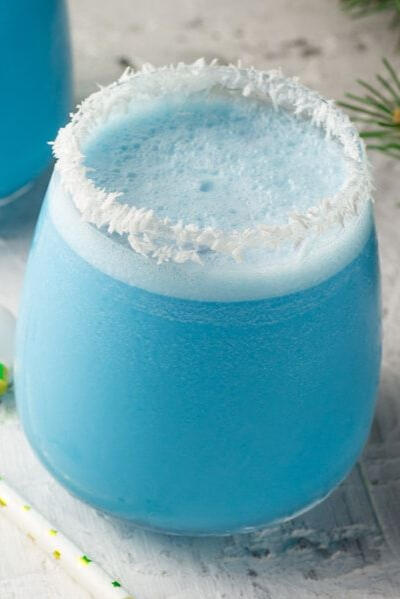 Saint Shiva's LibationThis drink is a slushie-like consistency, with a coconut rimmed glass. It is a vodka based drink mixed with a blue raspberry slush.