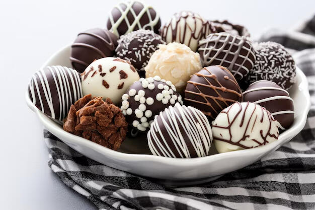 Plate of ChocolatesThe collection of chocolates is up to you, with a variety of dark, milk, and white chocolates. Naja and the fae around the building have been working hard to coat the chocolates in a range of toppings. Please ask for more information!